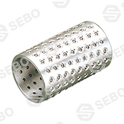 SE-FZH(铜基), SE-FZL(铝基), SE-FZP(树脂基)钢球保持固,分别以铜合金、硬铝合金、POM树脂为基体,并在其外圆表面上,加工出排列有序、大小适当,形状特殊的孔穴,在其孔穴中镶入滚动轴承钢球。口采用最新的沟槽圆周锁球工艺,有效地解决了传统式锁球和压痕式锁球不能完全防止钢球脱落的难题。孔底加工出90°止口使钢球在孔内自由转动而不脱落。由于钢球的直径大于保持圈的壁厚,所以在使用时钢球高出保持圈内、外圆表面,直接与相配的孔与轴接触,使基体(保持圈)浮于中间,并且相配的孔与轴半径之差小于钢球直径,即钢球与之配合为过盈配合,配合精度高,轴与孔相对运动灵活。是保持圈的更新换代产品。